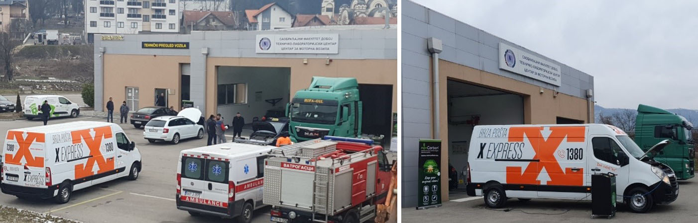 Tom prilikom, dostavnim vozilom pridružili smo se javnoj demonstraciji sa praktičnom primjenom nonCarbon uređaja na komunalnom, policijskom, putničkom, teretnom vozilu, vozilu hitne pomoći, ko i drugim vozilima za slične namjene.