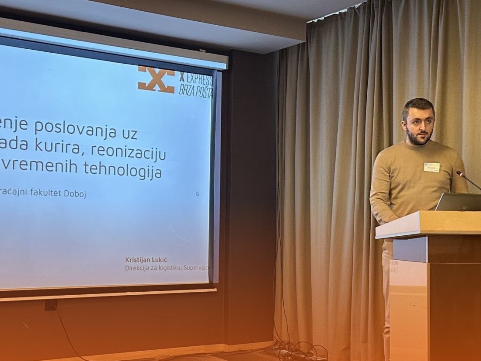 Naš kolega, Kristijan Lukić, supervizor regije Doboj, održao je predavanje na temu „Unapređenje poslovanja uz optimizaciju rada kurira, reonizaciju i uvođenje savremenih tehnologija“ u kojem je istako važnost partnerstva između privatnog sektora i akademske zajednice u promovisanju napretka u oblasti saobraćaja i komunikacija.