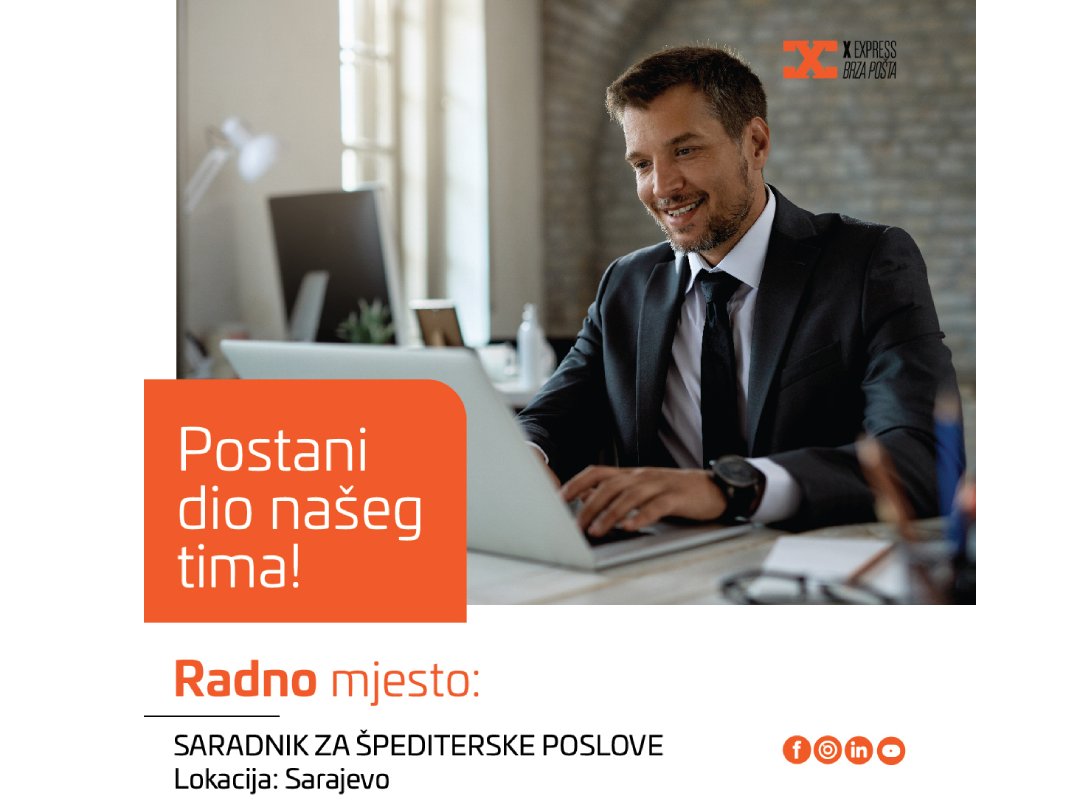 X express, vodeća brza pošta u regionu, traži motivisanu osobu za poziciju SARADNIKA ZA ŠPEDITERSKE POSLOVE u Sarajevu.