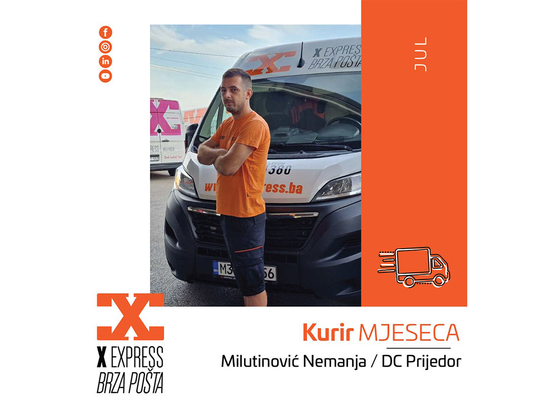 Sa ponosom izdvajamo našeg kurira za mjesec jul, Milutinović Nemanju, koji je ostvario izvanredan uspjeh - preko 99% u kvaliteti dostave!