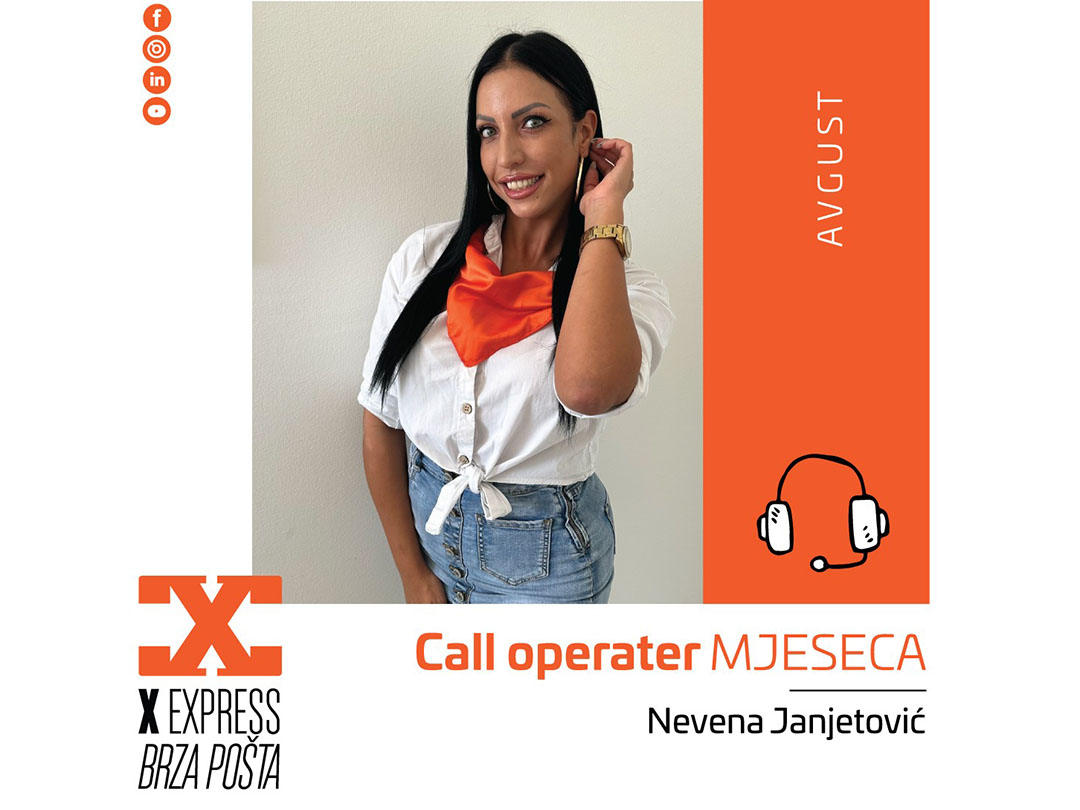 Posebnu zahvalnost dugujemo radnicima koji svojim zalaganjem i trudom čine našu brzu poštu prepoznatljivom po kvalitetnoj usluzi i profesionalizmu. Znamo da se naš tim sastoji od najboljih, a ovaj mjesec najbolja od najboljih u sektoru Call operatera je naša Nevena Janjetović.
