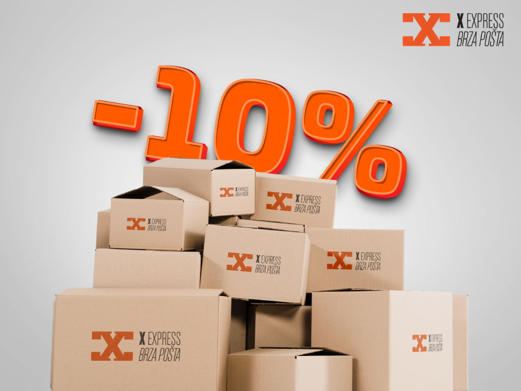 X express brza pošta će tokom februara realizovati specijalnu prodajnu kampanju pod nazivom „Petkom dobijaš desetku!“ za sve potenencijalne klijente, odnosno pravna i fizička lica koja nemaju zaključen ugovor sa našom kompanijom. Svi zainteresovani, potencijalni klijenti mogu ostvariti 10% popusta na iznos poštarine ako četvrtkom zakažu svoju pošiljku za dostavu u petak.