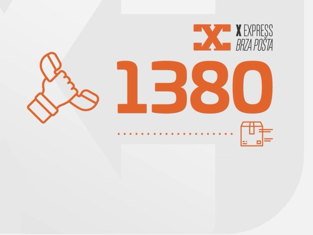 Takođe, na broj 1380 (taster 1) možete najaviti pošiljku, koju ćemo na vaš zahtjev preuzeti i dostaviti u najkraćem vremenskom roku. Preko X express kurirske službe vaša pošiljka je sigurna i bezbjedna, a zahvaljujući voznom parku koji broji preko 350 dostavnih vozila i 14 distributivnih centara širom Bosne i Hercegovine, mi pošiljke dostavljamo dok kažeš “X”!