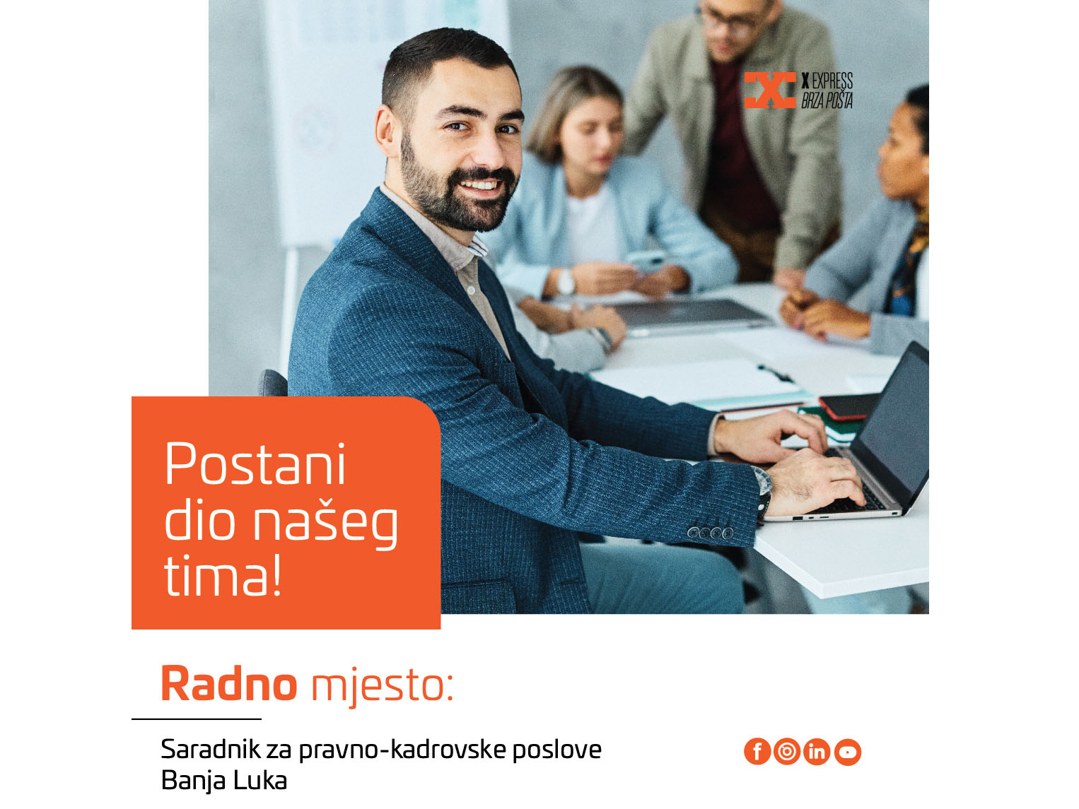 Želite li biti ključni član našeg tima? Pozivamo vas da nam se pridružite na poziciji Saradnik za pravno-kadrovske poslove!